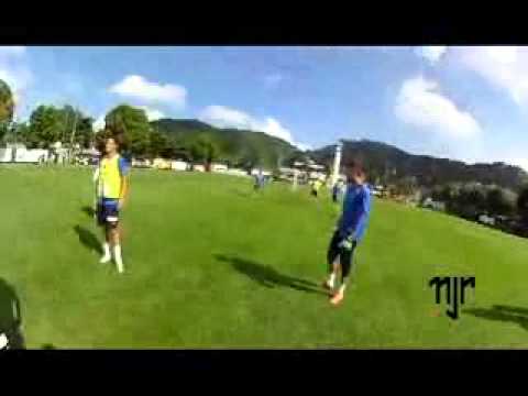 Ylli brazilian Neymar tashmë është futbollist i Barcelonës dhe fundjavën që lamë pas luajti edhe ndeshjen e lamtumirës me Santos ku nuk mugnuan as lotët. Por në stërvitjen e tij të fundit me klubin brazilian, braziliani ka patur një ide të veçantë: ka filmuar stëvitjen e skuadrës me një kamerë të vendosur mbi kokë.Rezultatet e imazheve janë spektakolare megjithëse dëgjohen dhe shikohen njaft qartë rënkimet e 21-vjeçarit.